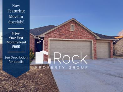 Receive one month of FREE rent when you move in by February 20th! Refrigerator, washer, and dryer are provided. You'll notice when entering the spacious open floor plan that this home is immaculate and feels barely lived in. It features white painted woodwork with vibrant splashes of color throughout, wood tile flooring, granite countertops with a breakfast bar in the kitchen, stainless steel appliances, a double vanity in the master bathroom, an interior laundry room, and a large backyard and covered patio to entertain family and friends. The 3-car garage includes an in-ground storm shelter.