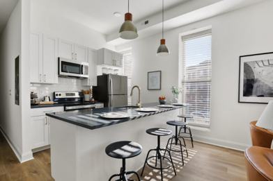 Experience the pinnacle of luxury in this two-bedroom, two-bathroom unit, blending historic charm with modern comfort. Nestled in a beautifully restored building, this home features 9+ foot ceilings, oversized windows, and an open-concept living space flooded with natural light. The kitchen boasts Marquita Midnight Quartz countertops, soft-close cabinets, and energy-efficient GE stainless steel appliances. Spa-inspired bathrooms with matte black finishes, gold accents, and rainfall showerheads offer a luxurious retreat. Additional features include a spacious walk-in closet, washer/dryer, smart home technology with keyless entry, and new plumbing, electrical, and HVAC systems. Enjoy nearby parks, community gardens, and excellent public transit. With secure building access, a resident lounge, bike racks, and exceptional property management, this home provides the ultimate in luxury and convenience, offering a lifestyle that exceeds expectations.