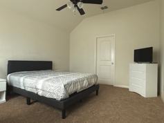 Each room includes a queen-sized bed, desk, TV, dresser, and nightstand.