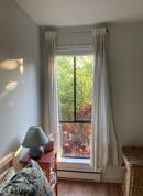 The apartment sits on the top floor of a quiet building with a SW facing balcony surrounded by trees. Perfect for morning coffee.