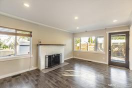Enjoy spacious living in this 2-bedroom, 1-bathroom single-family home offering 1,550 square feet of thoughtfully designed interiors. The open floor plan centers around a charming fireplace, creating a cozy ambiance in the living room. The kitchen combines style and functionality, featuring a center island with bar seating, stainless steel appliances—including a side-by-side fridge, a 5-burner electric range, a microwave, and a vented hood—plus crisp white shaker cabinetry and a garden window perfect for cultivating fresh herbs.