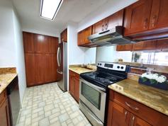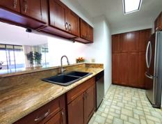 Great opportunity in a great location! Diamond Head view, spacious one-bedroom condo, huge patio/deck with electronically controlled HURRICANE SHUTTERS making it private for a semi-enclosed office or den. Royal Iolani Ewa Tower is located behind Iolani School, conveniently close to Waikiki and Ala Moana Shopping Center. Kitchen has wood cabinets and granite counters that open to a spacious living room flowing into a huge 293 sq. ft. lanai. Great for entertaining! Bedroom sliding door opens to the lanai for an evening view of Diamond Head and Waikiki. Bathroom has a full-size washer and dryer. Utilities includes electricity, water, cable and central air. Virtually staged living room.