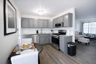 - Sleek stainless steel appliances