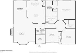 Each bedroom features plush carpeting for added comfort, with the primary suite boasting an en suite bathroom complete with a double vanity sink. Ceiling fans run throughout most of the home, adding to the comfort and ambiance.