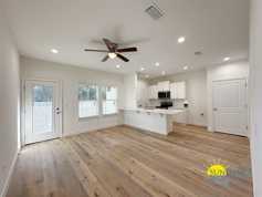 This stunning 3-bedroom, 3-bathroom home offers the perfect blend of comfort and convenience! Step into a spacious living room with beautiful vinyl flooring, a modern kitchen featuring a breakfast bar and sleek stainless steel appliances—including an electric stove & oven, refrigerator, dishwasher, and mounted microwave. Each bedroom has its own private bathroom, with one designed as a convenient Jack & Jill setup for guests. The home also includes a dedicated laundry room with a washer and dryer (AS-IS). Outside, enjoy a fully fenced backyard for added privacy. With two driveway parking spaces, this home has everything you need!