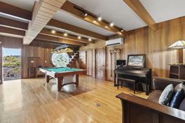 The open-concept layout of Samurai House blends Japanese-inspired aesthetics with modern elegance. The kitchen is a central highlight, equipped with state-of-the-art appliances, a wine storage system, bar seating, and oversized countertops that make meal preparation and entertaining a delight. With five large sliding glass doors, the kitchen opens to bring in refreshing ocean breezes and natural Hawaiian sunlight.
