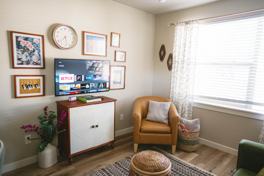 Experience the beauty of nature and calming atmosphere is this bright and beautiful guest cottage nestled in the sustainability minded Pringle Creek Community. Enjoy all your favorite shows on a smart TV. This stunning clean space is equipped for maximum comfort during your down time and is fully equipped to make yourself right at home.