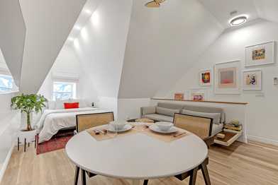 Introducing a beautifully renovated upper studio apartment, complete with new furnishings and convenient parking. This cozy and comfortable space has been carefully updated with modern finishes, creating a stylish and welcoming atmosphere. Whether you're relaxing in the cozy living area or cooking in the fully equipped kitchen, you'll appreciate the attention to detail throughout. With convenient parking included. This studio apartment is located in the vibrant neighborhood of the Junction, in the west end of Toronto.