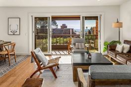 Enjoy ocean breezes and breathtaking water views from this exquisitely remodeled 3-bedroom, 2.5-bath townhome, nestled in the resort-style community of Sea Point. Thoughtfully designed, this home features luxurious upgrades, including bamboo hardwood floors, stainless steel appliances, gas fireplace, custom built-in closets in all bedrooms, and a fully finished garage. Skylights flood the space with natural light, enhancing its bright and airy feel. The unit features two patios and a balcony. The balcony offers a stunning vignette view of Torrey Pines beach. The home spans two levels, with stairs leading down to the bedrooms from the upper level where the garage is located. The decor strikes a perfect balance between earthy and cool ranch/beach vibes, giving the space a relaxed yet stylish feel. The primary bedroom features a king-size bed, the second bedroom includes a queen-size bed, and the den is equipped with a twin bed plus a twin size trundle bed. The community grounds are equally impressive, with towering, coniferous trees creating a gorgeous natural setting. Just steps from the pool, hot tub, a 4-acre park, tennis court, local dining, and a five minute walk to the beach, this home offers the ultimate coastal lifestyle in a serene natural setting. Additional highlights include air conditioning, beach paraphernalia, and a gas grill & walking distance to both the beach and the Torrey Pines hike, making this the perfect place to unwind and enjoy everything the area has to offer.