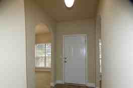 The primary suite also showcases an elegant tray ceiling with fan, as well as an ensuite bathroom with a private water closet, double vanity, garden tub, separate glass-door shower, and a walk-in closet. Two additional bedrooms share a second full bath with a single vanity and tub/shower combo.