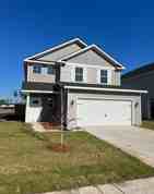 Don't wait to check out this amazing home in the brand new Heritage Pointe phase of Flemington Village subdivision in Hinesville! This home makes a stunning first impression with a cathedral ceiling in the Great Room. Kitchen is open with a center island with bar seating, adjacent eating area, all stainless steel appliances, and spacious pantry. Owner's Suite is located on the first floor and has a large en suite bath complete with soaking garden tub and stand-alone shower, as well as a double vanity. Laundry Room is also on the main floor for maximum convenience and has a useful utility closet for extra storage. Upstairs you will find a bonus loft that is perfect as a flex space for an office, den, play room, etc. Three bedrooms are spacious and share a full bath with an oversized vanity. LVP flooring in the wet areas and carpet in the bedrooms for a cozy feel. Backyard is large with a privacy fenced in yard, Bermuda sod, and irrigation system. Located on a corner lot near the community mailbox and close to green space in the common area. Just a few minutes from neighborhood groceries, dining, and Downtown Hinesville. Approximately 4.5 miles to Fort Stewart. No Pets Allowed!