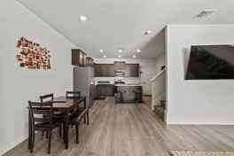 Stylish and modern townhouse in a prime Mesquite location, just 20 minutes from downtown Dallas! This thoughtfully designed home features an efficient floor plan with the main living, kitchen, and dining areas downstairs, along with a convenient half bath. The sleek kitchen boasts quartz countertops, a spacious island, a gas range, and ample cabinetry and counter space—perfect for any home chef. Upstairs, you'll find three well-sized bedrooms, two full baths, and a versatile flex space to suit your needs. This lease includes a washer, dryer, and refrigerator. Close to shopping, entertainment and major highways. Don't miss this fantastic opportunity!