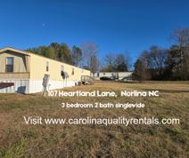 NORLINA NC singlewide for rent 3 bed 2 bath