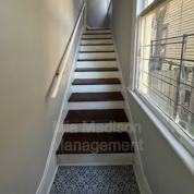Charming upper level 2 bedroom/1 bath duplex with large living room and spacious bedrooms. Large front porch and covered deck in rear with shared fenced in backyard. Includes washer/dryer in unit.