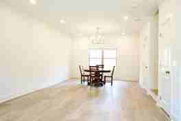 This townhome features a modern kitchen with stainless steel Whirlpool appliances, quartz countertops, and stylish LVP flooring seen throughout. With nine-foot ceilings on both levels, the space feels open and inviting. Enjoy walk-in closets, a large laundry room with a furnished washer and dryer, and a small backyard for added outdoor space.