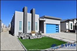 Inviting, this three-bedroom, two-and-a-half-bath home is designed for modern living and effortless entertaining. Step into an airy, open-concept space where high ceilings and sleek finishes set a stylish tone. The true heart of the home is the stunning kitchen, anchored by a dramatic waterfall-edge island that invites gathering. With granite countertops and stainless steel appliances, it's a chef's delight that flows seamlessly into the main living area, perfect for hosting guests. Upstairs, the spacious primary suite offers a private sanctuary, complete with ambient lighting, a generous walk-in closet, and a spa-like ensuite featuring an oversized tiled shower. A versatile loft provides a perfect bonus space for a home office or cozy reading nook. Step outside to the covered patio, an ideal extension of the living space for weekend barbecues or peaceful morning coffee. Located in a prime El Paso area, enjoy convenient access to shopping, dining, and the essentials of daily life, with Fort Bliss nearby. This home blends sophisticated design with everyday comfort.