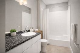 One full bathroom plus a private powder room in one bedroom