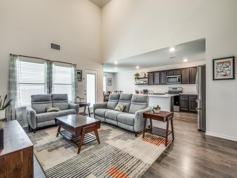Master bedroom and one secondary bedroom downstairs and 2 bedrooms with a game room upstairs. Luxury vinyl plank flooring in the entry, extended entry, family room and kitchen. Beautiful kitchen has Quartz countertops, stainless steel appliances and 42 inch cabinets. large Backyard with a covered patio.