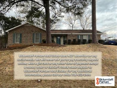 Bickerstaff Parham Real Estate does NOT advertise on any social media. We will never ask you to pay a security deposit online, with a gift card or any other form of payment except a money order or cashier's check made payable to Bickerstaff Parham Real Estate. For any additional information, please call our office 706-653-1999.