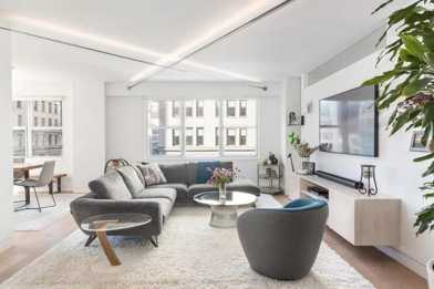 ZMP88957267 - This fully bespoke two-bedroom, two-bathroom home is ideally located on Fifth Avenue, just one block from Union Square and at the literal corner of all the best Downtown has to offer. Finished in 2020, this custom designed apartment has all the trappings you could imagine on top of generous storage space throughout, an office nook and more. The windowed chefs kitchen with marble countertops features a Wolf oven and stove, Subzero fridge and freezer and a wine fridge as well, a Bosch dishwasher and a Sharp microwave drawer. The backsplash is made of glass tiles and the cabinets are all custom millwork. Other key features throughout the apartment include 7-inch white oak hardwood floors, custom LED lighting controlled by a Lutron system, electric shades, a central air conditioning system which is Nest-ready, Sonos integrated speakers and CitiQuiet windows. There is also a washer and dryer as well. The primary suite boasts multiple closets and a Thasos marble ensuite bath with a seamless walk-in shower featuring Fantini shower fixtures and custom lighting features. On the other wing of the apartment, there is a southern facing second bedroom with a Breda murphy bed, adjacent to a second stunning bathroom.A a full-service building with a 24-hour doormen, a live-in superintendent, a landscaped roof garden, a common laundry room, storage facilities, a bike room, and an onsite garage accessible from within the building. The location is highly convenient, with close proximity to 10 subway lines, the Union Square Farmers Market, Whole Foods, restaurants, and shopping as well as the brand new Wegmans. Additionally, it is within easy reach of the Village, Soho, Gramercy Park, Chelsea, and the Meatpacking districts. The building allows pets and pieds-a-terre and permits 80% financing.