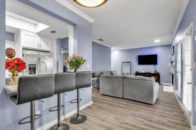 Enjoy the outdoors and still have a retreat to call home in this beautifully remodeled, two bedroom, condo located in the Copperfield Condominiums neighborhood. This home has everything you need: mature trees, gorgeous walking trails, two pools, all appliances, even the refrigerator, washing machine, and dryer. The spacious living room includes a cozy wood-burning fireplace and has a covered back patio. The kitchen has plenty of cabinet space, a nice farmhouse sink, and a breakfast bar that extends into the dining area to create an open and inviting space. The primary bedroom includes space for a bed and a sitting area, large windows to let in the natural light, dual vanities in the bathroom, and tons of closet space. The second bedroom can be used as an office, a nursery, or a second bedroom.