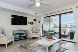 When you get to "A Little Piece of Heaven", you will first step onto the outdoor deck and go through the slider to enter the interior of the unit. Inside you will find yourself in the living/dining and kitchen area. The kitchen has everything needed for a meal together, a cute dining table is ready for service, and the sofa converts into a sleeper for the kiddos or extra guests. There is a full bathroom with a shower/tub combo. The bedroom has a Queen bed and private balcony where you will find the laundry closet.