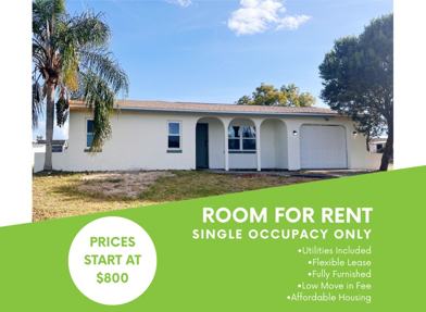 Welcome to your cozy room in Deltona, FL. This furnished room features a queen bed, dresser, 40 inch smart TV, two shared bathroom and access to a fully equipped kitchen with modern appliances. Enjoy the convenience of included utilities and a beautiful lawn. No pets allowed. Don't miss out on this gem for $750/month!