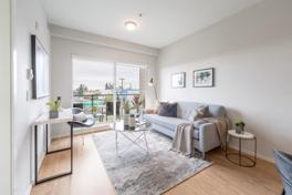 * 30” Gas cooktop, dishwasher and microwave. In-suite laundry.