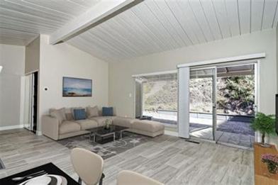 Cat friendly Mid-Century modern single-story home. Features 3 bedrooms and 2 full bathrooms. - Walk to SDSU! Vaulted ceilings, Warm Custom Wood Tile flooring throughout, and carpet in bedrooms. Central A/C. Renovated Kitchen with Quartz countertops, Stainless Appliances, and Custom Backsplash. Designer Custom Paint In & Out! Entertaining Living Room. Large Bedrooms. 2 beautifully upgraded Bathrooms with Tubs/showers. Enjoy your Covered Patio and fire pit in the very private backyard.