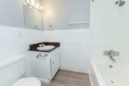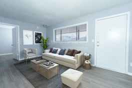 This one-bedroom apartment features wood-like flooring, fresh paint, and shades throughout as well as granite countertops.