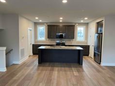 The main level boasts an open layout with a spacious living room featuring large windows that flood the space with natural light and a stunning courtyard view. A conveniently located powder room completes the main floor. At the heart of the home, the chef’s kitchen shines with a large island, granite countertops, and new stainless steel appliances—including a French door refrigerator and gas range—making it perfect for entertaining and everyday living.