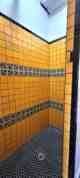 Unit 205 showcases distinctive artisan touches, including double vanity, hand-painted sinks and custom hand painted tile showers, celebrating craftsmanship and individuality. Reclaimed wood butcher block countertops provide warmth and function, perfectly complementing the building’s exposed ceilings and original architectural features that tell a story of the past. Large windows in the living area bring in a ton of light.