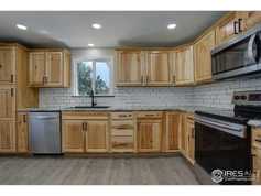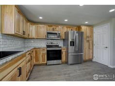 This updated home in Berthoud features pine wood kitchen cabinets, new stainless appliances, tiled shower, central heat/air, in-unit washer/dryer, and a wood-burning fireplace — all on a scenic 5-acre property with mountain views.