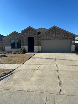Discover modern living in this stunning almost brand new home located in the charming city of Cleburne, TX. Built in 2022, this beautifully designed home features four spacious bedrooms and two well-appointed bathrooms with granite counter tops, providing ample space for your lifestyle needs. The spacious primary bedroom is split from the others and has a large walkin closet and shower. The contemporary open layout is ideal for both relaxation and entertainment, with an abundance of natural light flowing through large windows, creating a warm and inviting atmosphere. The stylish kitchen is equipped with SS appliances, generous granite counter tops, walk in pantry, and island for additional seating, perfect for culinary enthusiasts who appreciate functionality and aesthetics. 15 SEER heat pump HVAC system to save on utility bills, 6 ft privacy fenced back yard, covered Back Patio, sprinkler system with rain sensor and more! Walking-Nature Trails with near by Chisholm Trail Parkway, Pat Cleburne Lake, Cleburne State Park, Sports Complex, Golf Course, Hospital, Arts Center, Wright Plaza Downtown and more! Don’t miss out. I’m calling this place home!