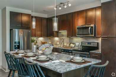 This modern 1 bed, 1 bath apartment features wood laminate floors, kitchen islands with open bar seating, and in-home Bluetooth speakers. Enjoy upscale amenities like a resort-style pool with tanning ledge, laptop bar, and sky lounge with stunning views.