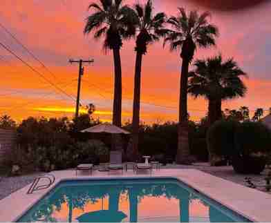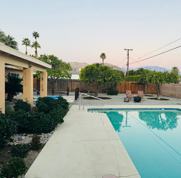 Eclectic Mid-Century Retreat in Palm Desert! This beautifully furnished 3-bed 2-bath home in the Deep Canyon Ranch community offers a blend of style, comfort, and convenience! Situated on a 1/4 acre lot, this home features a spacious floor plan, vaulted ceilings, and Spanish tile floors throughout. Experience indoor-outdoor living at its best with a sparkling pool, in-ground spa, mature landscaping, fire pit, gas BBQ and breathtaking mountain views! Kick up your feet under the covered patio with dining for six, cooling fans, and a TV! Nourish yourself in the well-stocked kitchen with quartz countertops and a tranquil view. Unwind in the primary suite with private spa access. King, queen, and 2 twin beds. New HVAC! Two-car garage with ample storage. Apple TV and high-speed Wi-fi- stream your favorites! PRIME LOCATION-CLOSE TO ELPASEO, GOLF COURSES, TOP RESTAURANTS, SHOPPING, HIKING TRAILS, ENTERTAINMENT!