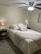 This beautiful unit is the entire lower level of a single-family, bi-level home. Welcome home to this quiet cul-de-sac, with high ceilings, open floor plan, and lots of windows for natural light! Two bedrooms, each with a queen bed & blackout shades. Fully equipped kitchenette with sink, full sized fridge & freezer, microwave, 2 burner hot plate, blender, coffee maker, toaster oven, dishes/ pots, silverware etc. Shared entrance & shared, in-unit laundry. Cozy living spaces with wood burning fireplace & a desk for your laptop. Common spaces shared with other tennant.