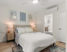 Each unit is designed with elegance and functionality in mind, featuring stunning hardwood floors throughout, in-unit washer/dryer, and energy-efficient mini-split AC and heating systems to ensure year-round comfort. The sleek, modern kitchens are equipped with European-imported cabinets and full-size stainless steel appliances, including a microwave hood and dishwasher—everything you need for a sophisticated lifestyle. Polished tile accents elevate the bathrooms, creating a serene, spa-like atmosphere.