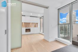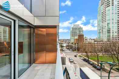 - balcony with city and partial water views