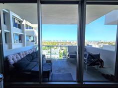 14th floor unit with balcony and ocean views across South Beach. Spacious layout with updated kitchen featuring dishwasher and recycled glass countertops. Building offers large pool, fitness center, BBQ area, bike storage, and on-site laundry on the same floor. Well-maintained building with quiet neighbors.