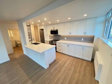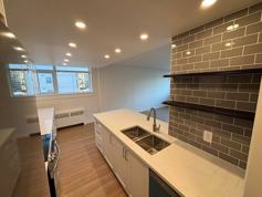This bright and spacious newly renovated 1-bedroom unit offers approximately 720 square feet of modern living space. This unit is located on the 7th (top) floor and faces south, providing plenty of natural light. The open-concept kitchen and living area feature high-quality quartz countertops, bespoke built-in storage, brand-new stainless-steel appliances, including a dishwasher, microwave, and lots of space for all your storage needs. The large bathroom also features plenty of additional storage. This unit has brand new in-suite laundry and stunning hardwood flooring throughout. Additional building amenities include, an elevator, outdoor parking, additional storage lockers (available for a fee), and secure bike storage, which is included for your convenience.