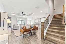 Stunning 4 bedroom, 3 bath home for rent in Holly Forest in Silverleaf! Discover this beautifully upgraded home, perfectly situated on a large fenced corner lot in a sought-after St. John's county community. With a 3-car garage featuring epoxy floors and overhead storage, this home offers both style and functionality. The open floor plan has a gourmet kitchen with extended cabinetry, quartz countertops, pendant lighting, and a gas cooktop--plus, the refrigerator is included! The kitchen seamlessly overlooks the spacious family room and cafe, perfect for entertaining. A triple-slider door leads to the extended private covered lanai with a retractable screen and paver fire pit. The primary suite, along with two additional bedrooms and a full bath, is located downstairs. Upstairs, a spacious bonus room with a full bath offers endless possibilities--whether as a 4th bedroom, guest suite, media/play room, or home office. Zoned for highly rated Liberty Pines Academy K-8 and Tocoi High School Enjoy exclusive access to Silverleaf's amazing amenities including pickleball and tennis courts, playgrounds, dog parks, pools & splashpark and the convenience of nearby retail, dining, and grocery stores.Plus, with easy access to 9B and I-95, commuting is a breeze! All kitchen appliances & washer/dryer are included. Will be available early May. Pets will be considered upon owner approval.