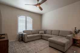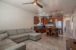 Furnished one bedroom villa located in gated community offering full access to onsite amenities during your stay. Short term rentals available upon request; pet ok with owner approval. Water, sewer, trash and basic cable included in monthly rate. (electricity & wifi not included) Villa includes open floor plan with large sectional, full size kitchen with stainless appliances, granite counters & tiled floors throughout. 3/4 bath features walk-in tiled shower. Queen size bed in bedroom. Separate utility room houses half bath, stackable washer/dryer and additional storage space. Property is fenced on both sides and at the back and offers a nice sized covered patio with outdoor furniture to enjoy the morning sunrise or evening sunsets. Ample parking for up to two vehicles and just a short distance to centrally located clubhouse. Two separate fenced-in dog parks onsite along with walking path around entire perimeter of boutique resort.