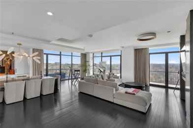 Nestled above the stunning Atlanta skyline, this expansive Astoria condominium epitomizes luxury living. Meticulously designed by the world-renowned Cooper Carry Architects, this residence is a true masterpiece of opulence in Buckhead, Atlanta. This rare, quiet end unit faces East toward Peachtree Hills, offering protected views free from future development. Enjoy treetop vistas, Peachtree Creek, and two iconic skylines: Buckhead and Midtown/Downtown. Boasting spacious, open interiors with soaring 10-foot ceilings, The Astoria at The Aramore seamlessly combines the finest materials—brick, stone, and glass—creating a timeless and enduring exterior. With only 70 residences in total, The Astoria offers exclusivity, with just six homes on the 8th floor. This McKinley corner end unit, one of the few available, spans the entire length of the North facade and the rear, providing unobstructed, panoramic views from all three sides. The unit includes three expansive terraces totaling 523 additional square feet, including one that gracefully wraps around, perfect for outdoor living. The residence is bathed in natural light thanks to its floor-to-ceiling windows and doors, blending the indoor and outdoor spaces effortlessly. The panoramic views showcase the glamour of Buckhead to the north, the allure of Midtown to the south, and the lush green canopy of Peachtree Hills framing it all. Few homes offer such iconic vistas of the Atlanta skyline. Completely renovated, this home combines sophistication with cutting-edge technology. Designed by Michael Habachy, the unit spans 3,167 square feet. The private primary suite, located on the east side of the unit, offers a tranquil retreat, while the west side features a second primary suite, a guest bedroom, and an office with views of Peachtree Road and Buckhead. The interior exudes modern elegance with sleek finishes, including upgraded fixtures, doors, and hardware. The home is fully equipped with Control4 home automation, allowing you to control lighting, music, heating/cooling, and security. All blinds and drapes are motorized for convenience, and the private office has been redesigned with Porcelanosa cabinetry for a sophisticated touch. For the culinary enthusiast, the kitchen is a dream. It features honed white stone counters and backsplash, custom-designed Blum cabinetry with integrated lighting, and premium Miele, Thermador, and SubZero appliances. The kitchen also includes island seating and built-in seating with storage running the length of the windows. The luxurious spa-inspired bathrooms offer ultimate relaxation, with handcrafted floating vanities, heated towel racks, heated floors, an oversized soaking tub with designer fixtures, a rain-steam shower with Steam Mist technology, and a separate water closet. Both walk-in closets are custom-designed by Porcelanosa. Residents of The Astoria enjoy an array of exclusive amenities, including a pool and separate spa with an outdoor fireplace, a covered grilling area, a wellness center, permanent green spaces, a pet walking area, 24-hour concierge service, and ample guest parking. This unit includes three secure, gated parking spaces. Located just moments from the BeltLine, parks, shopping, and renowned restaurants, this residence offers the perfect blend of luxury and convenience. Walk to the finest shops and dining in the neighborhood, and experience the pinnacle of Atlanta luxury living at The Astoria.
