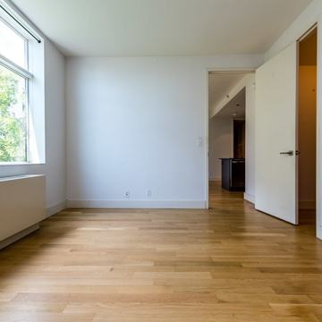 Beautiful condo style apartment with tons of light, closets and more! The kitchen is amazing with a huge wrap around counter and bar facing the living room. Perfect for entertaining. One room is monstrous with it's own bathroom and the other room is a bit smaller but still a very good size. And the building has more amenities than you can shake a stick at. Including very hard to find things like, practice space, a recording studio, and a wood shop!