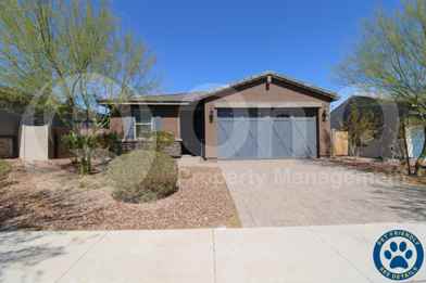 1,834 Sq Ft! 4 bedroom, 2 bath home with a charming single-story floor plan in Surprise! Home opens to a large living/dining room, great for entertaining! Kitchen boasts ample cabinetry, granite countertops, an island with a breakfast bar, and included stainless steel appliances! Ceiling fans and blinds throughout! Lovely 4 bedroom home coming with tile and carpet flooring in all the right places. Primary bedroom offers an ensuite bathroom, dual sinks, and an expansive walk-in closet! Fully fenced backyard for relaxing outside! 2 car garage! Laundry room with washer/dryer hookups. Convenient Surprise location, close to shopping, schools, and restaurants.