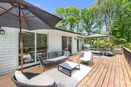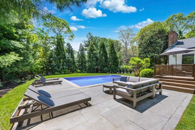 Enjoy 2700 sq ft of interior living space across two levels within this impeccably renovated cedar shingle ranch that offers the perfect blend of sleek modern luxury and bright coastal chic. An inviting entrance foyer leads to a spacious living and dining area with a vaulted ceiling and skylight above.. A wood-burning fireplace serves as the focal point of the living room with its stone and shiplap surround which also conceals a 50' flat screen. The open contemporary kitchen features Liebherr & Miele appliances, white custom cabinets, brilliant quartz countertops and a tiled backsplash. A large and private primary bedroom features an ensuite windowed bathroom with marble flooring, vanity, tiled walk-in shower and stylish designer fixtures throughout. A second ensuite junior primary bedroom boasts an abundance of natural light and views of the freshly landscaped property. The third bedroom adjacent to another full bath wows with a 5 ft x 5 ft picture window. The 900 sq ft, brand new in 2025, lower level with amazing natural light and access to the back yard and outdoor shower offers excellent living, recreational and amenity space. It features a stylish media lounge with gas fireplace and large TV, a gym and recreation area, a separate laundry pantry with washer/dryer, built-in storage cabinets, countertops and hanging space, a glass enclosed floor to ceiling wine closet and a gorgeous fourth full bathroom. Outside, a nicely furnished Cumaru wood deck extends across the back of the house and leads to an Ice Blue Stone patio positioned alongside one corner of the heated pool. An expansive lush lawn offers sun throughout the day . With access to Three Mile Harbor within the neighborhood and just a short distance to bay beaches and the village of East Hampton, this home gives you the priceless opportunity to relax, entertain and experience the best of your summer in the Hamptons! Listing ID: 869652
