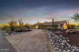 Enjoy panoramic mountain views, city lights, and spectacular sunsets from your backyard. Take a dip in the pool, relax on the patio, or stargaze in Carefree's dark night sky! Spacious single-family home featuring 3,403 square feet with a versatile floor plan including 4 bedrooms plus an office, allowing for a fifth bedroom or dedicated workspace. A separate in-law suite with its own bath and shower adds versatility for guests or multi-generational living. Interior features include Saltillo tile flooring, vaulted ceilings in the living areas, and a two-way wood-burning fireplace. Outdoor living is a highlight with a screened back porch, private pool, and generous parking provided by a front turnabout driveway and a long concrete driveway leading to the garage. Available fully furnished. Small pets to be considered. 6 month minimum lease.