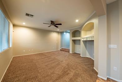 Spectacular 4-bedroom, 2-story home near Rhodes Ranch featuring warm two-tone paint, ceramic tile flooring downstairs, and carpet in the upstairs bedrooms. The kitchen offers Corian counters with plenty of cabinet space. The primary bedroom is spacious, with well-sized secondary bedrooms for added comfort. The backyard includes a covered patio with ceiling fans and landscaping. Conveniently located near shopping, restaurants, and more!