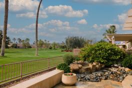 Only Available May - Oct 15th. Nestled in the picturesque desert landscape of Palm Desert, in the 55+ community of Sun City Palm Desert where there is never a shortage of activities to enjoy, this exquisite home offers a luxurious retreat for those seeking a blend of elegance and relaxation. Boasting two spacious bedrooms and two bathrooms, this property invites you to unwind in style and comfort. As you enter, you'll be greeted by a sense of sophistication and charm, with a design that seamlessly blends modern touches and classic elegance. The focal point of the home is the remodeled kitchen, a chef's dream come true with top-of-the-line appliances, sleek countertops, and custom cabinetry that exudes a timeless appeal. Step into the living area and be captivated by the stunning views of the lush golf course, inviting you to sit back and savor the beauty of your surroundings. The new luxury vinyl wood flooring adds a touch of warmth and sophistication. Each bedroom is a sanctuary of tranquility, offering a private retreat to escape the hustle and bustle of daily life. The bathrooms are also beautifully appointed. Outside, the expansive patio beckons you to relax and soak in the desert sun, while taking in the breathtaking views of the pristine golf course. This outdoor space is the perfect place to unwind and recharge. Experience the epitome of desert living in this magnificent Palm Desert home! (Casita not included and is occupied.)